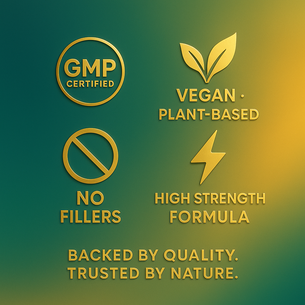 Harness the combined power of Berberine and Organic Ceylon Cinnamon in pure, vegan capsules made without fillers or additives. Vegan and Gluten-free, this GMP-certified formula delivers 100% active ingredients for clean, potent support. Each bottle contains 90 capsules to help sustain your wellness journey. Plus, enjoy a free PDF guide filled with useful tips to optimize your results. Choose natural, transparent supplementation designed to elevate your health every day.